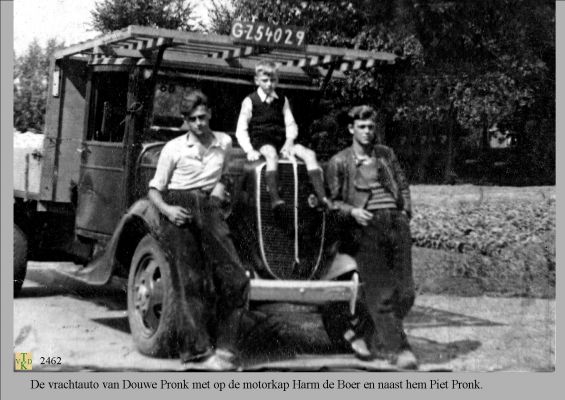 | Personen | Douwe Pronk, met Harm de Boer{op de moterkap} en Piet Pronk. |